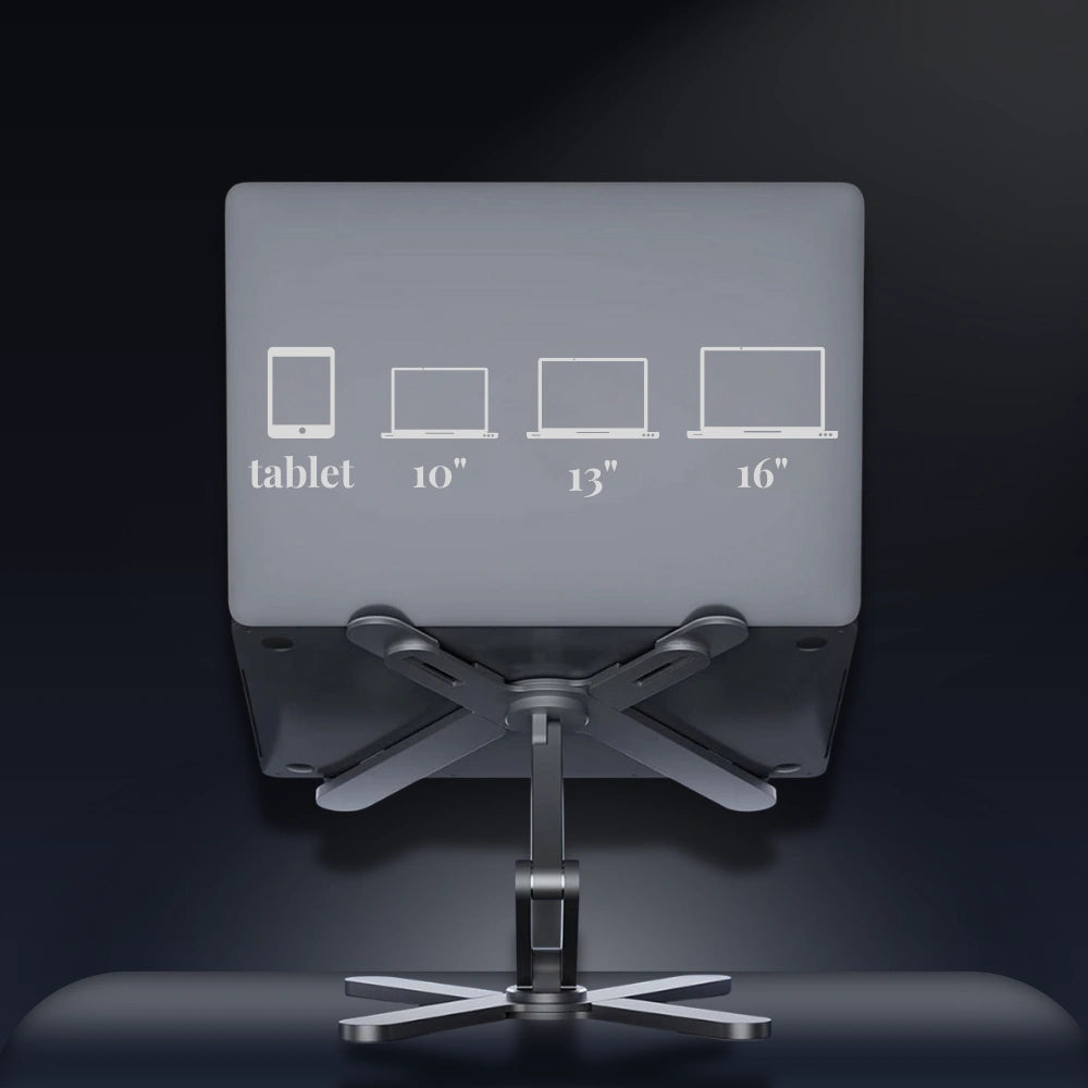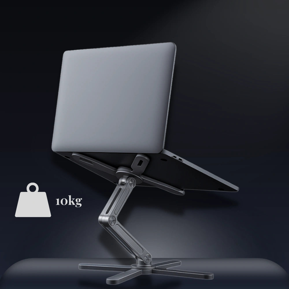 Zdjęcia tego nie oddają. Konstrukcja opiera się na precyzyjnych łożyskach i aluminiowym ramieniu, które bez problemu utrzymuje do 10 kg — od MacBooka Air po 17-calowe laptopy gamingowe. Model-X nie drży, nie ugina się i nie zawodzi.